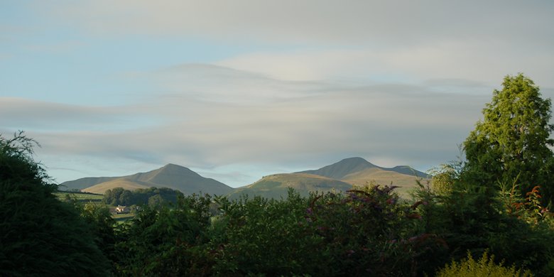 Fortunately, I have better photographs on my own website, including an excellent shot acquired by the Google StreetView camera. Its high viewpoint, combined with bright sunshine, provides a much more pleasing image than I’ve been able to achieve: see http://www.jlb2011.co.uk/walespic/churches/llanfihangelcwmdu2.htm